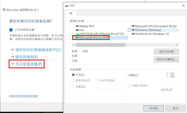 選擇列印金鑰,印表機選擇Print to PDF